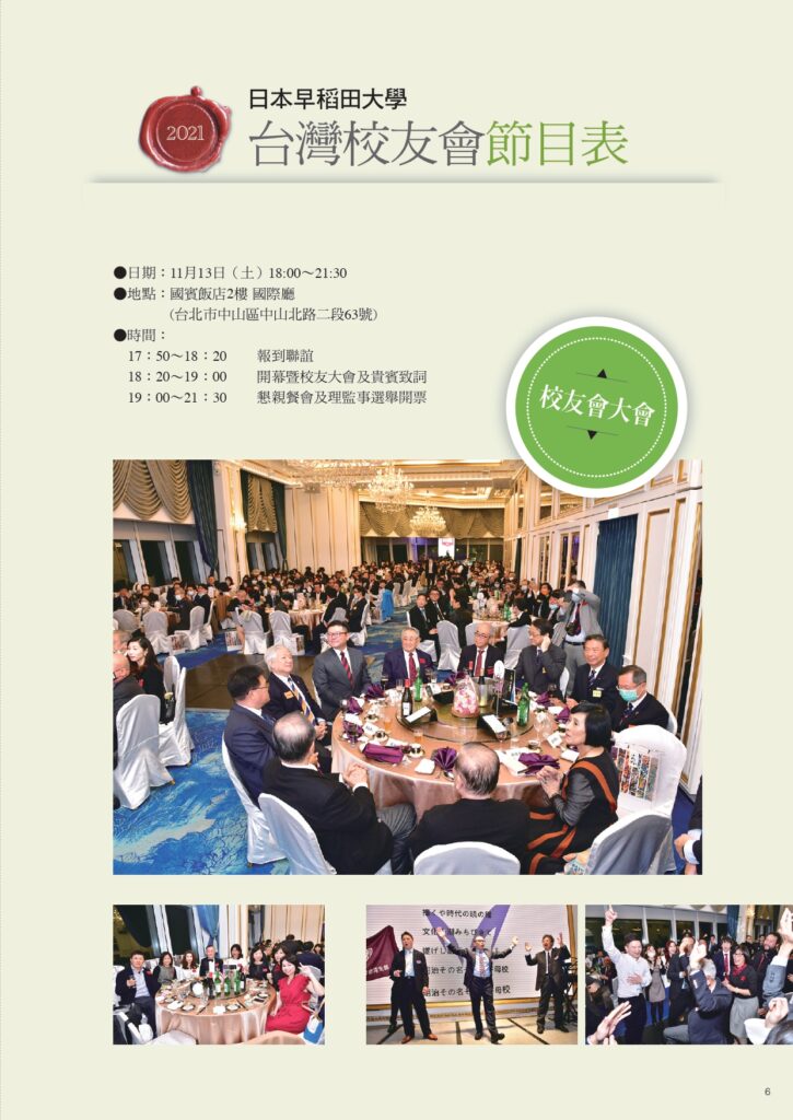 2021年早稻田大學台灣校友大會 報名資訊